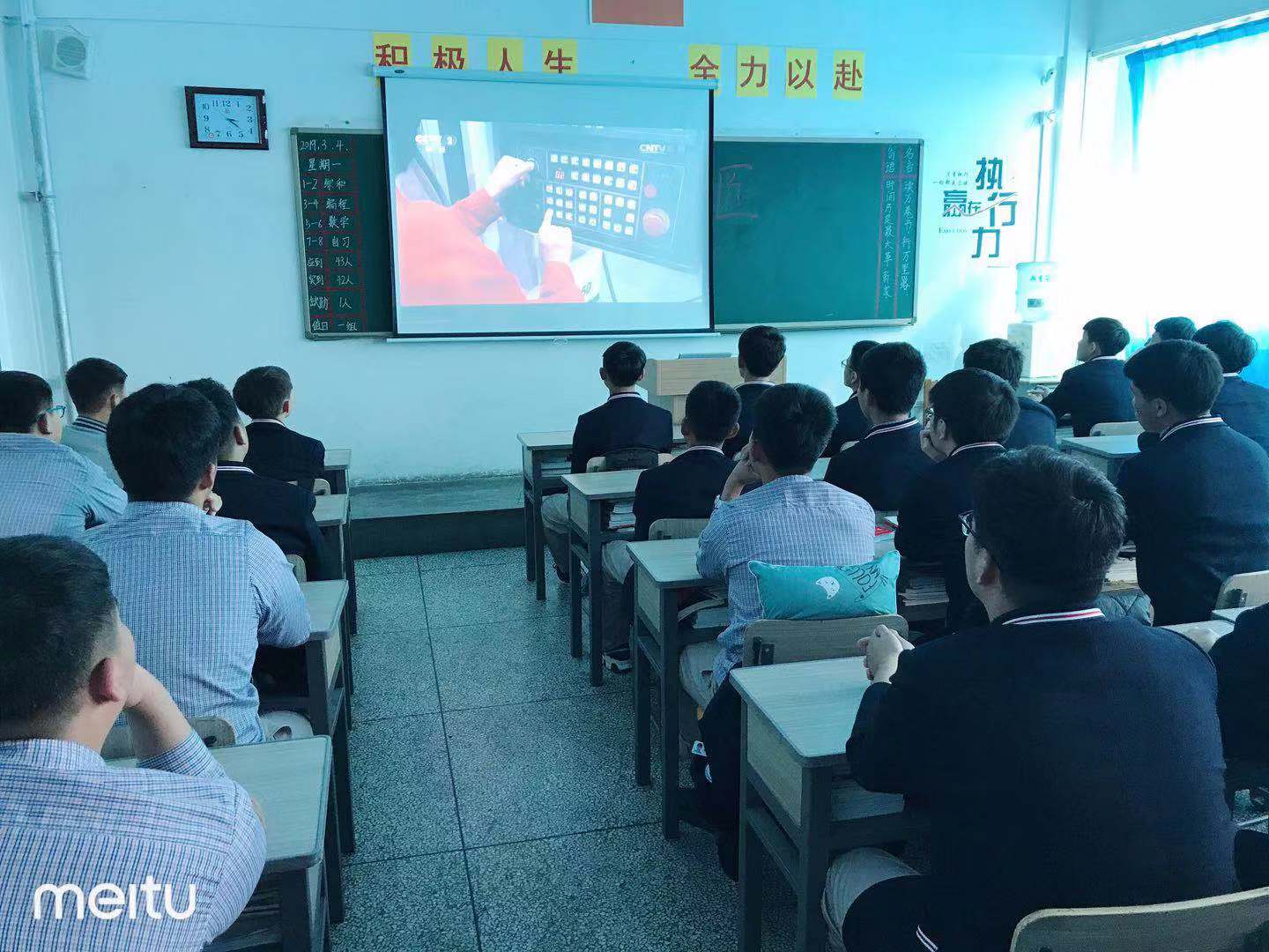 班會上,同學們通過觀看《中國大能手》、《大國工匠》、《匠心筑夢》等專題片,進行知識問答、心得交流,學習技術能手的事跡。