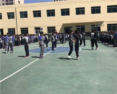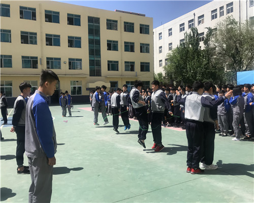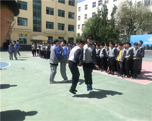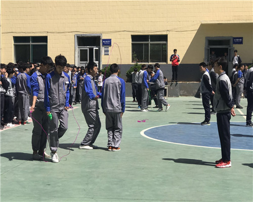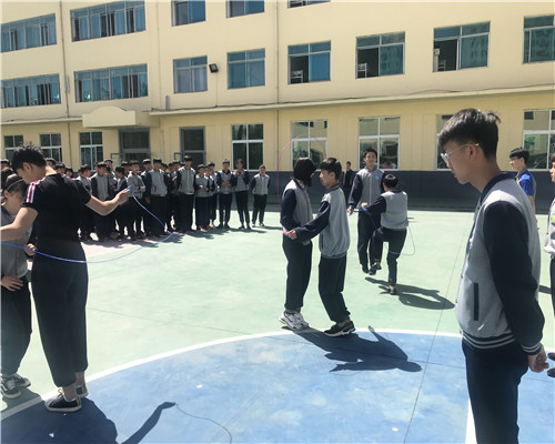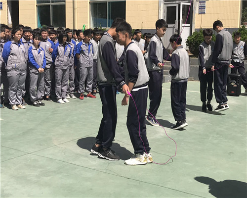 自學生處發布了2018年跳繩雙人賽比賽通知后,學生利用體育課和業余時間抓緊練習,班級先進行了內部的篩選,最后各班派出6名精兵強將上陣。5月17日間操時間比賽正式開始。隨著裁判的一聲令下,只見參賽選手個個飛快地揮著繩子,吶喊助威的同學不停地為參賽選手加油鼓勁,各自喊出獨有的班級口號。賽場上學生們激烈的角逐、裁判們公正的計數,賽場外工作人員認真的匯總著成績,比賽結果將于近期公布。