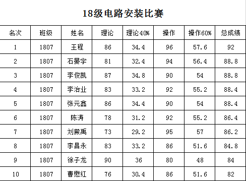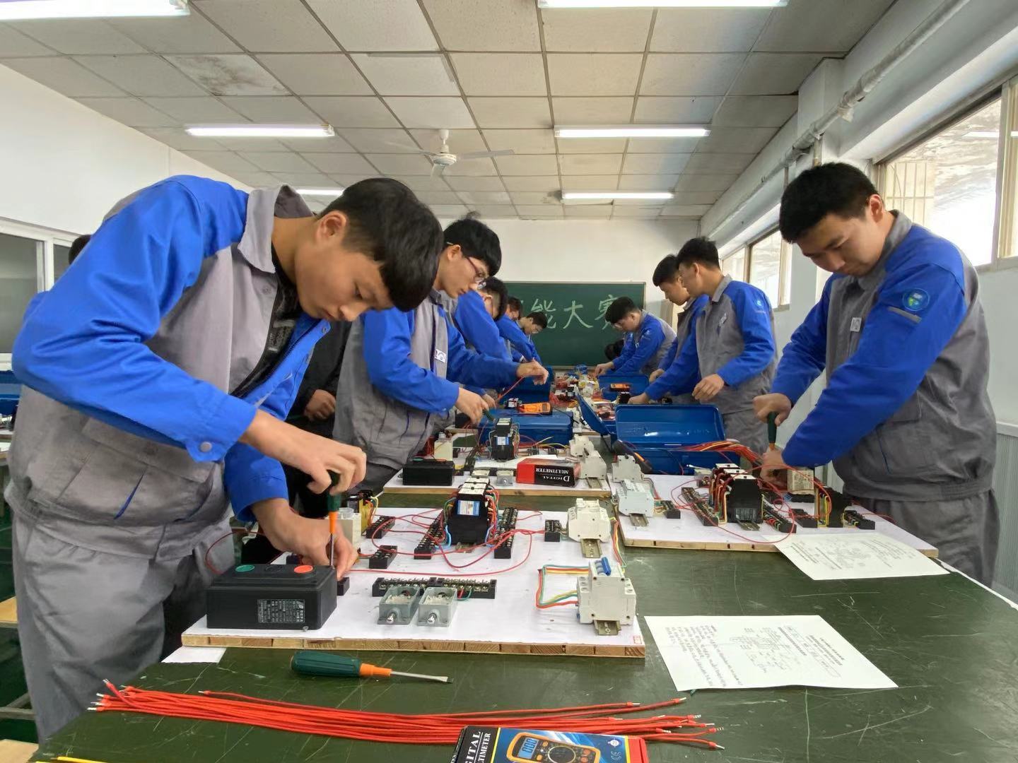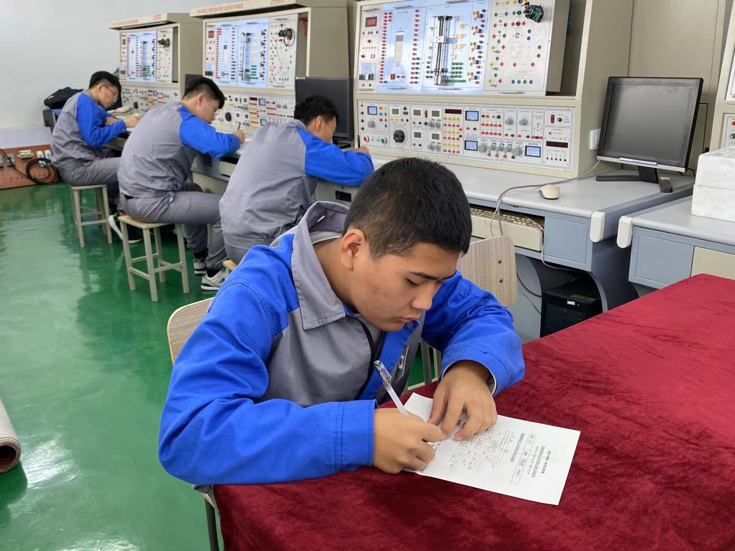 本次比賽按照市級技能比賽考核的標準進行,分理論答題和現場操作兩部分。理論答題過程中學生需將電路圖的原理進行分析說明,實踐操作環節,學生需在規定時間內完成電路圖的現場連接。經過50分鐘的比賽,全體參賽同學順利完成,最終王程、石晏宇、李俊凱獲得了本次比賽的冠亞季軍。