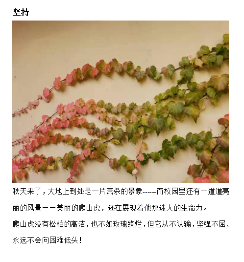 最美的校園、最美的瞬間,是本次攝影大賽要展現的主題,所有參賽的作品均為師生日常生活中的場景,展現了同學們在校園里的生活、學習情況。通過學生投稿,教師評選,最終從眾多參賽作品中選出了4幅最優照片。