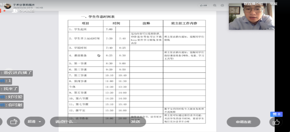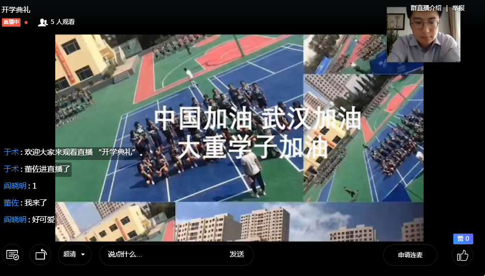 今天各班級正式開始了網絡直播、錄播課程的直播學習。雖然學習的地點不是學校的教室,班級的黑板被老師的電腦屏幕所代替。但是學生們的學習狀態一點也不差。早早的做好了準備工作。